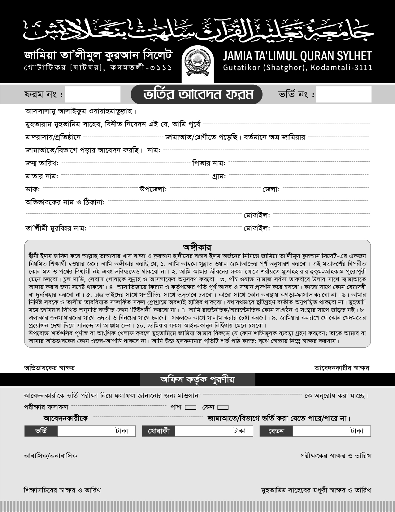 জামিয়া তা’লীমুল কুরআন সিলেট। সিলেট সিটি কর্পোরেশনের ২৭ নং ওয়ার্ডের গোটাটিকর (ষাটঘর এলাকায় সম্পূর্ণ শহুরে কোলাহলমুক্ত একটি দ্বীনী শিক্ষা ক্যাম্পাস। উত্তর-পূর্বে স্বপ্নীল সোনার গাঁ, প্রকৃতির মুক্ত হিমেল বাতাস আর চারদিকের সবুজাভ সমারোহে স্নিগ্ধ পরিবেশে অবস্থিত একটি বহুমুখী শিক্ষা প্রতিষ্ঠান। বাংলাদেশে কুরআন শিক্ষার কিংবদন্তী পুরুষ শায়খুল কুররা মাওলানা আলী আকবর সিদ্দীক রাহ.’র মোবারক হাতে আঞ্জুমানে তা’লীমুল কুরআন বাংলাদেশের অধীনে ২০০৩ সালে প্রতিষ্ঠিত হয় জামিয়াটি । আঞ্জুমানের মিশন ও ভিশনকে আরো সুদূরপ্রসারী ও গতিশীল করার লক্ষ্যে এর পূর্বে প্রতিষ্ঠিত হয় আঞ্জুমান কমপ্লেক্স। শায়খ রাহ.’র ব্যাপক শ্রম, ইখলাস ও লিল্লাহিয়াতের মহিমায় তাঁর জীবদ্দশায় জামিয়াটি শিক্ষার মাধ্যমিক স্তর (মুতাওয়াসসিতাহ) পর্যন্ত অগ্রসর হয়। কালের পরিক্রমায় প্রভুর ডাকে সাড়া দেন তিনি। ভারপ্রাপ্ত হিসেবে দায়িত্ব অর্পিত হয় তাঁরই সুযাগ্যে বড় সন্তান বিচক্ষণ ব্যক্তিত্ব মাওলানা ইমদাদুল হক নোমানী’র হাতে। এরপর আঞ্জুমানের মজলিসে শুরার সিদ্ধান্তক্রমে পরপর এহতেমামের দায়িত্ব পালন করেন দু’জন: মাওলানা ক্বারী হারুনুর রশীদ ও হাফিজ মাওলানা ক্বারী ইনাম বিন সিদ্দীক। ২০১৮ সালে আবারো পূর্ণ দায়িত্বপ্রাপ্ত হন মাওলানা বিস্তারিত...